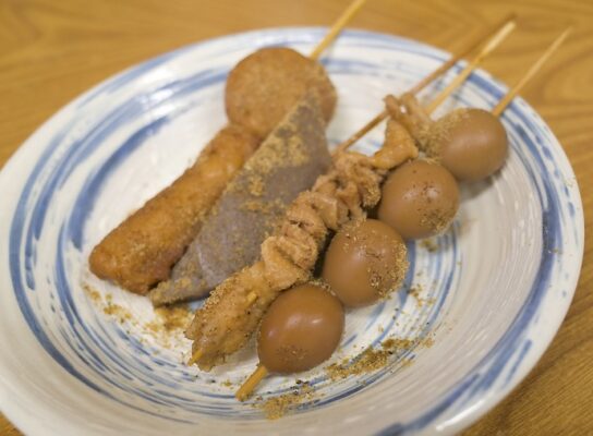 旅先で「ひと休み&ローカルごはん」を楽しみたいときにぴったりなのが、駄菓子屋兼おでんの小さなお店「すいのや」。場所は掛川城大手門のすぐそば、散策途中にふらっと立ち寄れる好アクセスです。店内には昔ながらの駄菓子がずらりと並び、奥にはカウンターやテーブル席があり、セルフスタイルで静岡名物の“静岡おでん”を楽しむことができます。ここのおでんは、だし粉や魚粉をたっぷりかけて味わうスタイルが特徴で、黒はんぺんやイカ巻きなどご当地ならではの具材も。ランチとして気軽に立ち寄るのにも最適。1本あたりの値段がリーズナブルで、数本を選んで軽く食べる“散策ランチ”としておすすめです。