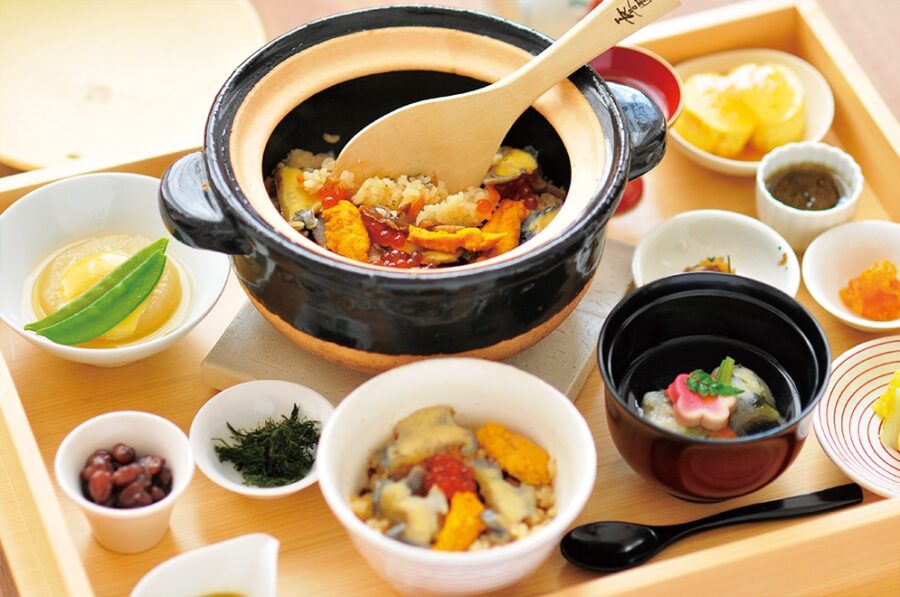 伊勢市本町にある「あそらの茶屋」は、伊勢神宮・外宮前に本店を構える老舗「伊勢せきや」が運営する人気の和カフェ。落ち着いた和の空間で、伊勢の風情を感じながらゆったりと食事が楽しめます。名物は「御饌(みけ)の朝かゆ」で、鯛やあわび、伊勢海老、さざえなど、贅沢な海の幸を使ったおかゆが選べます(1,500円〜)。素材の旨味を丁寧に引き出した優しい味わいは、体に染み渡る上品な美味しさ。朝7時30分から営業しており、参拝前の朝食にもぴったりです。ランチタイムには、伊勢鯛の御饌膳や煮あわび釜飯などの御膳メニューも人気。地元の旬を活かした料理とともに、伊勢らしいおもてなしを堪能できます。