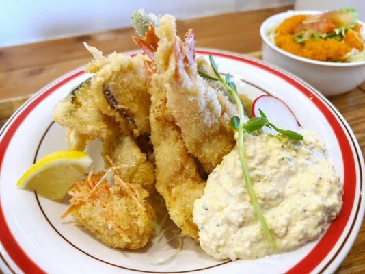 伊勢市船江にある「ヒトサラ」は、地元で人気の定食専門店。家庭的であたたかみのある料理を提供し、ランチ・ディナーともに幅広い世代から愛されています。メニューは豊富で、「エビフライ定食(1,850円)」や「海老と野菜の天ぷら定食(1,700円)」、自家製だれが評判の「チキンおろしカツ定食(1,650円)」など、どれも手作りの味わい。野菜たっぷりの副菜や味噌汁も付き、栄養バランスの良さも魅力です。人気の「しらす丼定食」は、釜揚げしらすの優しい塩味と天ぷらのサクサク感が絶妙で、リピーターが絶えません。木目調の落ち着いた店内は居心地が良く、カウンターやテーブル席が整い、一人でも家族連れでも入りやすい雰囲気。素材の味を生かした丁寧な料理で、伊勢の地元食堂らしい温かさを感じられるお店です。