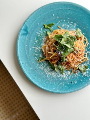 伊勢市小俣町に佇む「café Lab obataN」は、真っ白な空間に季節の彩りが映える予約制ランチが人気のカフェレストラン。コース仕立てで提供されるランチは、「あおさのバターサンド」や「新じゃがいものスープ」、「20種野菜と生ハムの“hatake”サラダ」に自家製フォカッチャなど、素材の持ち味を丁寧に引き出した内容。メインは「釜揚げしらすとブロッコリーのオイルパスタ」または「自家製ベーコンとモッツァレラのトマトパスタ」などから選べます。食後は“today’s sweets”で締めくくり。ランチは1日6組の完全予約制、カフェ利用は午後から(目安13:45頃〜)。洗練された空間で、静かにゆっくり味わいたい日にぴったりの一軒です。