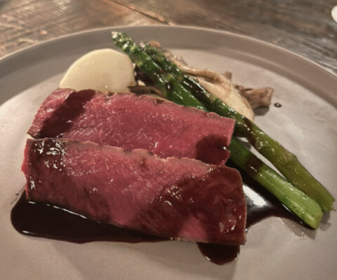ヨーロッパの山小屋を思わせるおしゃれな空間で、本格的なフレンチベースの料理が味わえる人気店。地元食材を使った創作ランチやワインとのペアリングが好評で、特にラムやビーフのグリルは絶品。吹き抜けの天井と薪の香りが心地よく、非日常を感じられる空間です。デートや特別な日のランチにぴったりの一軒。