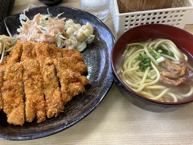 人気の「とんかつ定食」は、サクサクに揚がった衣とジューシーな肉の旨みが絶妙で、ボリュームも満点。ほかにも、スパイスの香りが食欲をそそる「唐揚げカレー」や、地元の風味を感じられる「八重山そば」など、多彩なメニューが並びます。さらに、希少な「やぎそば」も楽しめるのがこの店ならでは。