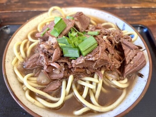 名物は、ウコンを練り込んだ香り高い「八重山そば」や「三枚肉そば」、「ソーキそば」など、沖縄らしい味わいが楽しめるそばメニュー。とくに「とんかつカレーそば」は、ウコン麺とカレーの相性が抜群と評判です。そばにご飯や刺身、小鉢が付いた「そば定食」なども人気で、ボリュームもたっぷり。
