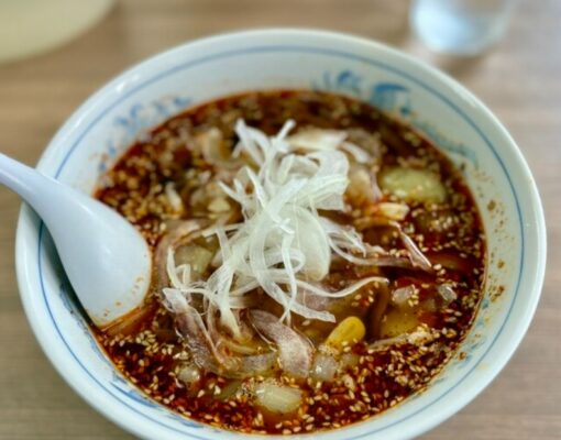 千葉・勝浦の名物「勝浦タンタンメン」を語るうえで外せない名店が「江ざわ」。素朴な佇まいながら、開店前から行列ができる人気店です。特製ラー油の香りが立ち上る一杯は、辛さだけでなく旨みとコクがしっかりと感じられる奥深い味わいが特徴。鶏ガラベースのスープに玉ねぎの甘みが溶け込み、ラー油の辛さと絶妙なバランスを奏でます。ぷりっとした中太麺がスープをしっかりと拾い、最後まで飽きずに楽しめるのも魅力。トッピングのひき肉と玉ねぎが食欲をさらに刺激し、後引く美味しさに箸が止まりません。観光の途中に立ち寄る方も多く、遠方から足を運ぶファンも絶えない名店です。辛いもの好きはもちろん、勝浦グルメをしっかり味わいたいならぜひ訪れたい一軒です。