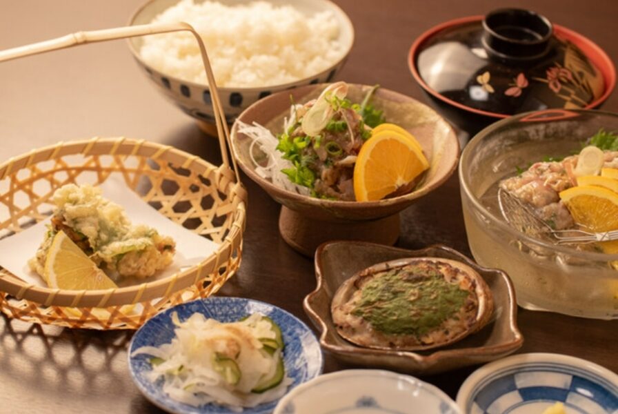 勝浦の港町に佇む「割烹 中むら」は、地元食材を生かした本格和食を気軽に楽しめる人気店です。木の温もりが漂う落ち着いた店内には、カウンター席と座敷席が用意され、ひとりの食事から家族の食事まで幅広いシーンで利用できます。ランチでは新鮮な魚介をふんだんに使った刺身定食や、揚げたての天ぷらが楽しめる御膳が好評で、ひとつひとつ丁寧に仕上げられた優しい味わいが魅力。旬の素材を活かす料理は、海のまち勝浦ならではの贅沢を感じさせます。観光の途中でも気軽に立ち寄れる雰囲気ながら、料理は本格派。落ち着いた空間で、勝浦の恵みをじっくりと味わいたい方におすすめの一軒です。