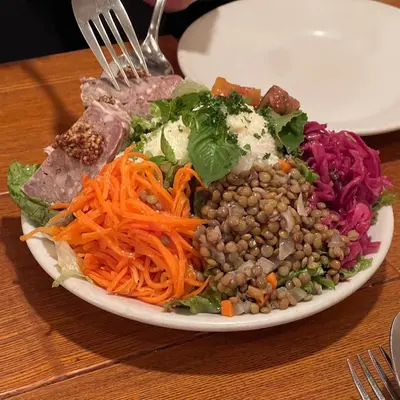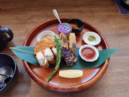 また、「キャベツメンチカツとポテトサラダ定食」や「竜田揚げと冷やし梅うどん定食」なども好評で、見た目にも楽しくヘルシーな内容が魅力。食後にはデザートやドリンクをゆっくり味わいながら、くつろぎの時間を過ごせます。素材の味を大切にした、丁寧な料理が評判のお店です。