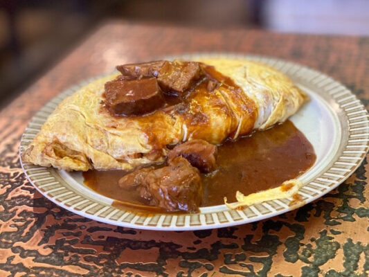看板メニューの「ビーフシチューオムライス」は、濃厚なデミグラスソースとふわとろ卵の絶妙なハーモニーが人気の一皿。さらに「ビーフシチューハンバーグ」や「ビーフカツレツ」など、肉の旨みを存分に引き出した料理も好評です。