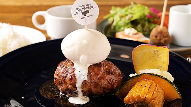 岐阜市上土居にあるメリーバッジは、銘柄豚「美濃けんとん」を使ったハンバーグが人気の洋食レストラン。明るくカジュアルな店内は、ランチからディナーまで幅広い世代でにぎわいを見せています。