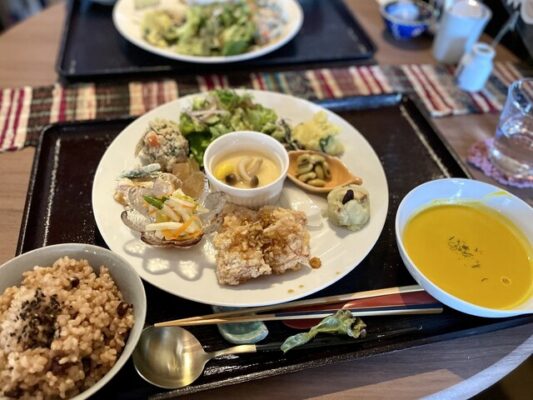 埼玉県秩父市黒谷にある「cafe 森羅万象」は、オーガニック食材を使った薬膳料理が楽しめる人気のカフェ。自然に囲まれた落ち着いた空間で、体にやさしい手作りランチを味わえます。