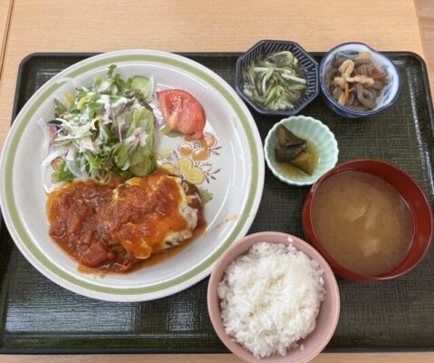 ランチでは、煮込みハンバーグやチーズハンバーグ、生姜焼き定食、唐揚げ定食など、どれもボリューム満点。中でも「エビチリ定食」はプリッとした食感と甘辛いタレがクセになる一品です。