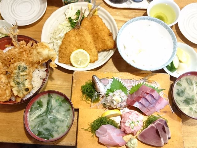 ほかにも「刺身定食」や「海鮮丼」、「えび天ぷら」などメニューが豊富で、どれも丁寧に作られた味わい深い一品。昼のみ営業のため、開店直後から多くの人で賑わう人気店です。