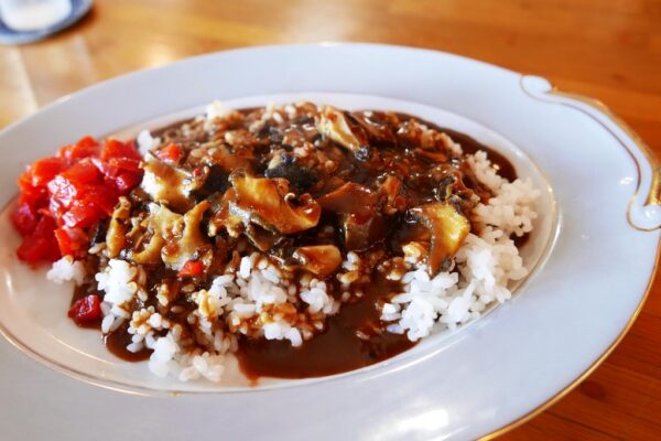 名物はサザエをたっぷり使った「サザエカレー」。地元で獲れた新鮮なサザエの旨味がルーにしっかり溶け込み、磯の香りとスパイスが絶妙にマッチする一皿です。ほかにも「サザエパスタ」や「海老フライカレー」など、館山ならではの海の幸を活かしたメニューが揃います。