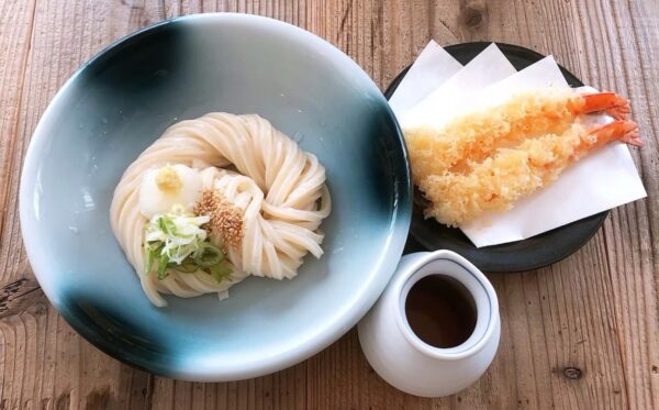 人気の「カレーうどん」は、スパイスと出汁のバランスが絶妙で、一度食べたら忘れられない味わい。ちくわ天や牛すじなどのトッピングも好評で、香ばしい天ぷらがうどんの旨みをさらに引き立てます。