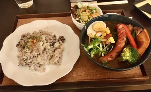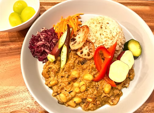 人気の「スープカレー」は、ゴロゴロ野菜がたっぷり入った優しい味わい。チーズやベーコンをトッピングした「チーズスペシャル」も好評です。スパイスの辛さが控えめで、野菜の甘みを感じられるバランスの良い味が魅力。