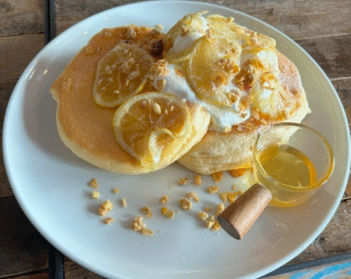 午後のカフェタイムには、「HANZAN PEACHバタースフレパンケーキ」や「キャラメルバナナスフレパンケーキ」などが登場。ふんわり甘い香りに包まれながら、ゆったりとしたひとときを過ごせます。