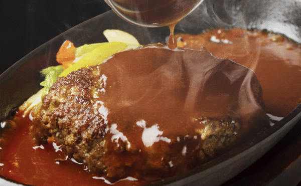 名物の「ハンバーグステーキランチ」は、牛肉100%のジューシーな味わいが魅力。特に「岩国れんこんハンバーグ」は地元食材を使った人気メニューで、肉の旨味とシャキッとした食感のバランスが絶妙です。