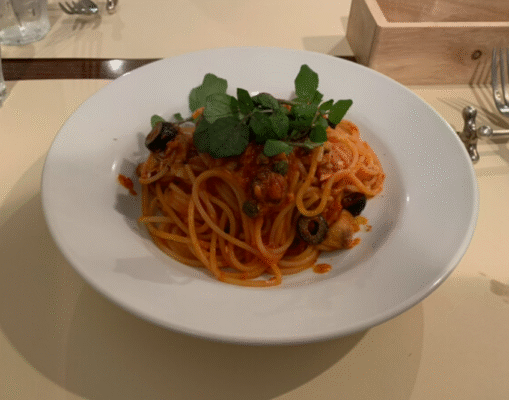 ランチでは、前菜・サラダ・フォカッチャが付いたパスタランチが人気。特に「しらすとイカスミのパスタ」は、旨味が凝縮された濃厚な味わいで評判です。夜には「鴨ローストのバルサミコソース」などワインと相性の良いメニューも揃い、昼夜問わず満足できる内容です。