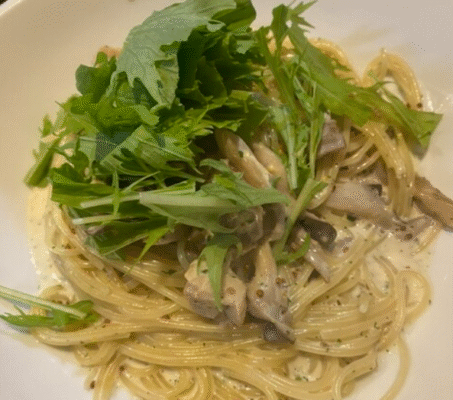 ランチは「パスタランチ」と「お肉ランチ」がありどちらもサラダ・パン・ドリンク付きで、彩り豊かな一皿が楽しめると評判です。特に人気の「牡蠣のポワレ」や「かぶと鶏ひき肉のクリームパスタ」は、素材の旨味が引き立つ優しい味わい。
