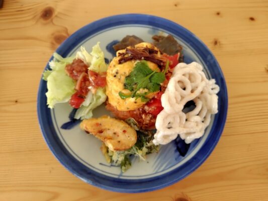 メニューには「焼きそば」や「アジアンオムライス」「ナシゴレン」「ズッキーニとひき肉のキーマカレー」など、アジアや洋風テイストを取り入れた多彩な料理が並びます。自家製のドリンクも評判で、「自家製ジンジャーエール」や「黒ごまミルク」「ほうじ茶練乳ソーダ」など、個性あふれる味を楽しめます。