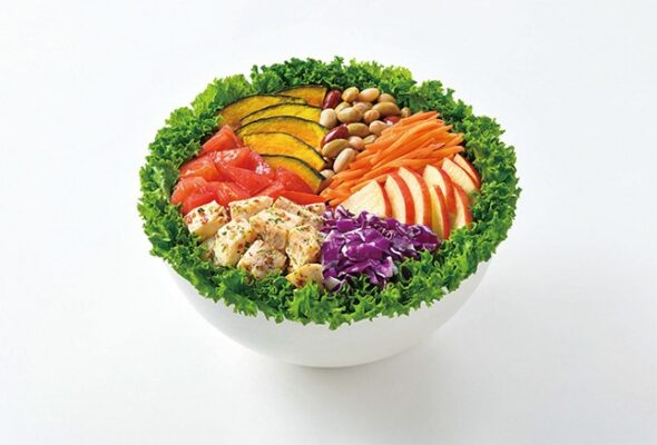 店内では、低温調理した国産肉や玄米、旬の野菜を使ったボリューム満点のサラダを提供。人気メニューの「コブサラダ」や「低温ローストポークのごちそうサラダ」は、食べ応えがありながらもヘルシーな一品です。
