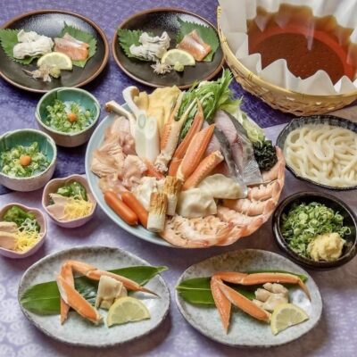 夜は会席コースや「かにすき」など季節の鍋料理も提供しており、特別な日の食事にもおすすめ。