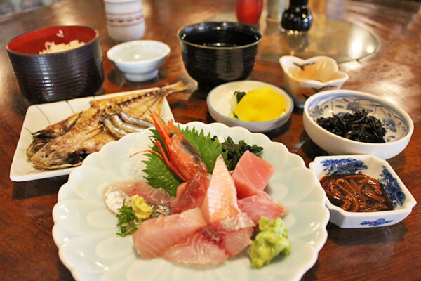 御食事処 よこ田は、西伊豆町安良里に位置する、刺身定食やあじフライなど魚料理が評判のお店です。安良里は西伊豆の中でも漁業が盛んな町で、新鮮な魚が水揚げされる漁港があります。ランチタイムには、その日に安良里港で水揚げされた魚を使った刺身や、地元で人気のあじフライ定食など、魚料理を中心としたメニューが揃っています。特に刺身定食は、鮮度抜群の刺身が盛られており、魚本来の旨味と甘みを堪能できる一品。あじフライは、サクサクの衣と身のふっくら感が絶妙で、地元の人々にも愛される人気メニューです。また、煮魚や焼き魚など、様々な調理法で西伊豆の魚を楽しめるのも魅力。定食スタイルのメニューには、ご飯や味噌汁、小鉢もついており、バランスの取れた内容。店内はアットホームな雰囲気で、地元の常連客も多く訪れます。西伊豆・安良里で本格的な魚料理ランチを楽しみたい方におすすめです。