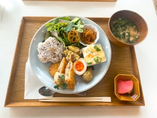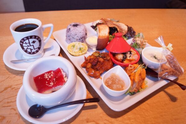 南蔵王町にある「ボントレ珈琲店」は、朝8時からゆったりくつろげるカフェ。全120席の広々とした空間にはソファ席やテラス席があり、ベビーカーでも入りやすく、旅の休憩スポットとしてもぴったりです。ここでぜひ味わいたいのが、名物「大人のお子様ランチ」。旬野菜・グラタン・雑穀米・デザート・ドリンクまで揃ったプレートで、料理の一つ一つにこだわりが光ります。また、ふわふわパンケーキにマカダミアナッツソースをかけたスイーツや、自家焙煎コーヒーも人気。パリで修業を積んだ店主が手がける本格派です。旅の合間に「ボントレ珈琲店」で、心地よいひとときを過ごしてみてはいかがでしょうか。