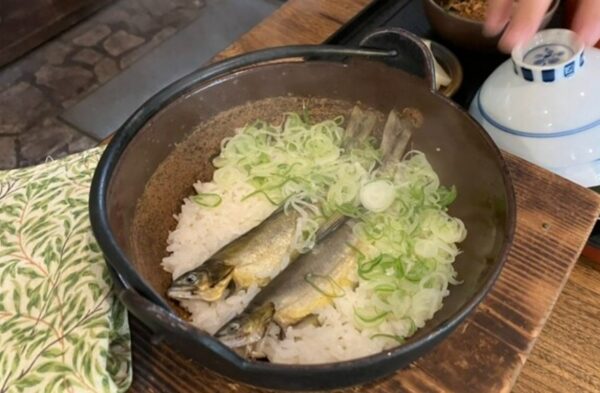秩父鉄道長瀞駅から徒歩3分、長瀞渓谷の岩畳へ向かう商店街に佇む創業100年を超える鮎料理の名店です。明治35年の創業以来、荒川の清流で育った鮎を使った川魚料理の伝統を守り続けています。看板メニューの「あゆめし」は商標登録されており、春先に捕れた稚鮎の煮干しで取った出汁で鮎を丸ごと土鍋で炊き込んだ逸品です。ふっくらとした香り高い鮎とコシのあるご飯、さらに焦げ目の香ばしさが一体となった味わいは、多くの観光客から愛されています。鮎の塩焼きやから揚げなど様々な鮎料理もご用意し、テラス席からは長瀞の自然が見渡せます。岩畳観光やライン下りと合わせての立ち寄りにおすすめの一店です。