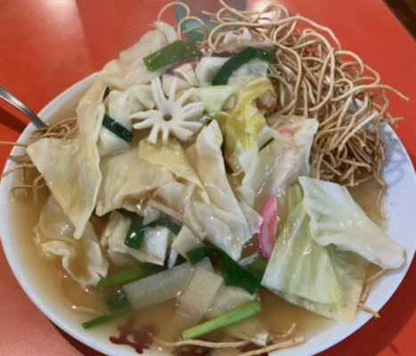 山口市民のソウルフードとして愛される名物「ばりそば」の人気店です。山口駅から徒歩圏内の本町エリアにあり、地元の人だけでなく観光客にも親しまれています。看板メニューのばりそばは、低温で揚げたバリバリの中華麺に、キャベツやしいたけ、きくらげ、もやし、鶏肉などたっぷりの野菜が乗り、豚骨ベースの醤油味の餡がかかったボリューム満点の一品です。最初はパリパリとした食感を楽しめ、時間が経つとしっとりとした麺に変化する二度美味しい味わいが魅力で、酢醤油やラー油をかけるとさらに風味が増します。ランチタイムには1000円以下というお手頃価格で楽しめるのも嬉しいポイントです。ばりそばの他にも、ちゃんぽんや中華丼、餃子などメニューも豊富に揃っており、どれもボリュームがあって満足度の高いお店として地元で長年愛され続けています。