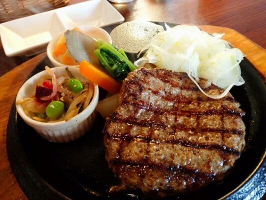 木のぬくもりを感じる落ち着いた店内で、香ばしく焼き上げた手ごねハンバーグを楽しめます。