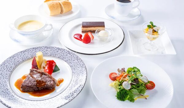 上高地ルミエスタホテル1階にある、梓川沿いに面したダイニングレストランです。帝国ホテル前バス停から徒歩約8分と散策の途中に立ち寄りやすい立地で、大きな窓から梓川の清流と正面にそびえる霞沢岳、六百山の雄大な景色を眺めながら食事が楽しめます。ランチは2日前までの予約制で、信州の旬の食材を取り入れた本格カジュアルフレンチのコースをはじめ、国産牛のステーキを使った贅沢なビーフステーキカレーや本日のパスタなど、気軽に楽しめるアラカルトメニューも充実しています。特にビーフステーキカレーは、カレー粉を使わず数種類のスパイスをブレンドして作るホテルオリジナルのルーが香り高く人気の一品です。明るく開放感あふれる店内で、山岳リゾートならではの優雅なランチタイムを過ごせます。源泉かけ流しのスパとランチがセットになった日帰りプランもあり、上高地散策と合わせて楽しめます。