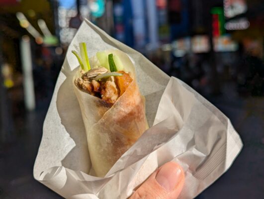 横浜中華街の老舗、中華街大飯店では、本場の味を気軽に楽しめる「北京ダック」の食べ歩きメニューが人気です。パリパリに焼き上げられた皮の香ばしさと、ジューシーな鴨肉の旨みが絶妙にマッチした逸品は、横浜でも屈指の美味しさ。薄く焼いた餅皮に、甘味噌、ネギと共に包んで食べるスタイルは、本格的な北京ダックの味わいそのままです。横浜中華街ならではの贅沢な食べ歩きグルメとして、特別な日の散策にもおすすめ。お店の熟練の職人が丁寧に仕上げる北京ダックは、一枚一枚が芸術品のような美しさです。横浜で本格中華を手軽に楽しみたい方に、ぜひ試していただきたい一品です。中華街散策の途中で、贅沢なひとときをお楽しみください。