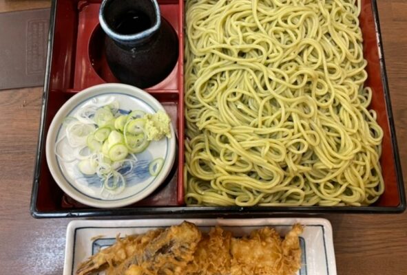 葭川公園駅から徒歩すぐ、千葉駅からは徒歩10分強の場所にある、昭和5年(1930年)創業の老舗そば店です。先代から受け継がれる抹茶入りの「茶そば」は毎日店内で手打ちされており、コシが強くツルツルとした喉越しの良さが自慢で、地元で長年愛され続けています。千葉市周辺のローカルグルメ「箱そば」は重箱にたっぷり盛られた茶そばにうずらの卵や薬味が添えられた名物で、繊細な香りと優しい味わいが楽しめます。ランチタイムには箱そばやえび天もりなど1000円台から本格的な手打ちそばが味わえ、カツカレーやカレー南蛮といったそば屋ならではの出汁が効いた逸品も人気です。創業時から鎮座する年代物の手巻き時計が刻む音が響く店内は、昭和の風情漂う落ち着いた雰囲気で、ゆっくりと食事を楽しめます。