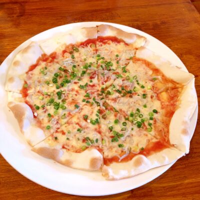 特にピッツァは、プリッとした海老、彩り豊かな野菜、全体を包み込む濃厚なチーズのバランスが絶妙と評判。丁寧に作られた料理が気軽に楽しめるため、地元でも長く愛されている一軒です。
