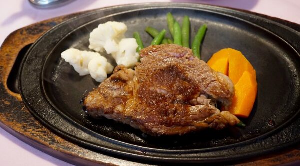人気の「ランプステーキ」は赤身ならではの濃い味わいと柔らかさが特徴で、脂控えめながら満足度の高い一皿。熱々の鉄板で提供されるため、香ばしい香りが食欲を刺激します。