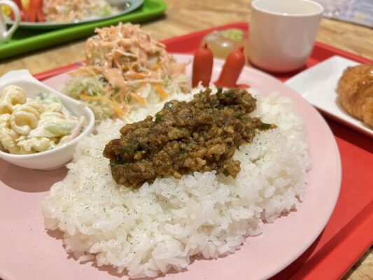 魅力は、好きなだけ楽しめるランチビュッフェ。数種類のカレーやライス、野菜料理、スナック、サラダなどが並び、スパイスの奥深さを気軽に味わえます。ネパールの蒸し餃子「モモ」も人気で、もちっとした皮とジューシーな餡がクセになる一品。どれも程よい辛さで、辛いものが苦手でも楽しめるバランスの良さも好評です。
