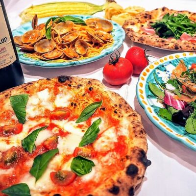 看板メニューは、定番のマルゲリータをはじめ、ロースハムと揚げナスのピッツァ、ピリ辛サラミとオリーブ、4種チーズなど多彩なラインナップ。特に「北海タコのピッツァ」は素材の旨みがしっかり感じられる人気の一品です。パスタも充実しており、濃厚なトマトクリームやジェノベーゼ、カルボナーラなどどれを選んでも満足度高め。