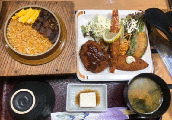 釜めしに白身フライ&コロッケ、チキン&コロッケ、エビフライ、ヒレカツ、ハンバーグ、焼肉など、しっかり食べたい派も軽めに済ませたい派も選びやすいラインナップが魅力です。昔ながらの家庭的な味わいが楽しめるので、ほっと落ち着く定食が食べたい日にもぴったり。