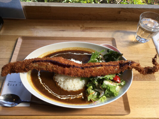 特に目を引くのが、釜揚げしらすと丸ごと一匹分の太刀魚の唐揚げ、さらに串蒲焼きまで豪快に乗った丼。太刀魚を使った浜焼きは、生姜の風味がきいた甘辛いタレがごはんと相性抜群で、お米がどんどん進む味わいです。地元ならではの海の恵みをたっぷり楽しめる内容で、満腹感も満足度も高いランチを求める方にぴったり。
