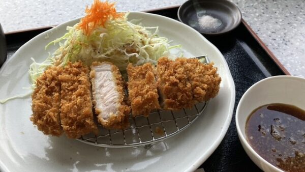 メニューはポークステーキ、とんかつ、かつ丼、しょうが焼き、冷しゃぶなど、豚肉料理を中心にバリエーション豊富。さらに特大エビフライやエビカレー、ビーフハンバーグ、ざるそばなど幅広いラインナップがそろい、どれを選んでもしっかり満足できる内容です。ごはんと味噌汁が付く定食スタイルで、食べごたえも十分です。