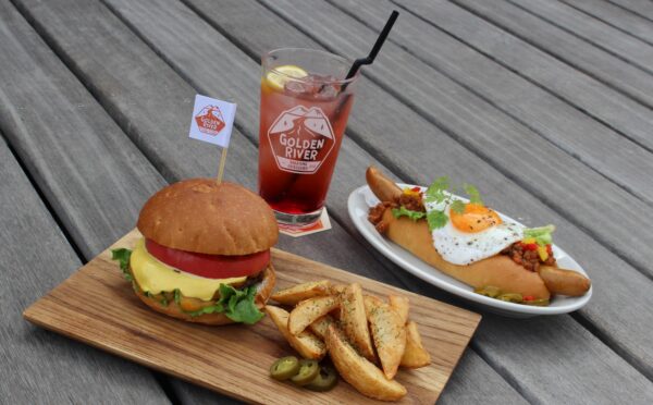 有田川町にある「GOLDEN RIVER」は、こだわりのクラフトビールと本格バーガーが楽しめる人気のレストラン。ウッド調の落ち着いた雰囲気で、昼も夜もゆったり過ごせる居心地の良さが魅力です。