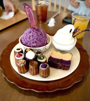 多良間島産の上質な黒糖と紅芋を使ったスイーツが楽しめるカフェです。全ての商品で使用している砂糖は多良間島産の黒糖のみを使用しているのが最大のこだわり。看板メニューの黒糖カヌレは外はカリッと中はもっちりとした食感で、黒糖の豊かな風味が楽しめます。紅芋モンブランソフトや紅芋バスクチーズケーキなど、紅芋を使ったスイーツも人気です。店内は木と白壁をメインとした落ち着いた雰囲気で、ゆっくりとカフェタイムを過ごせます。カヌレのテイクアウトも可能なので、お土産にもおすすめ。宮古空港から車で5〜10分ほどの場所にあり、お店の横に駐車場も完備されています。営業時間は10時から18時までです。