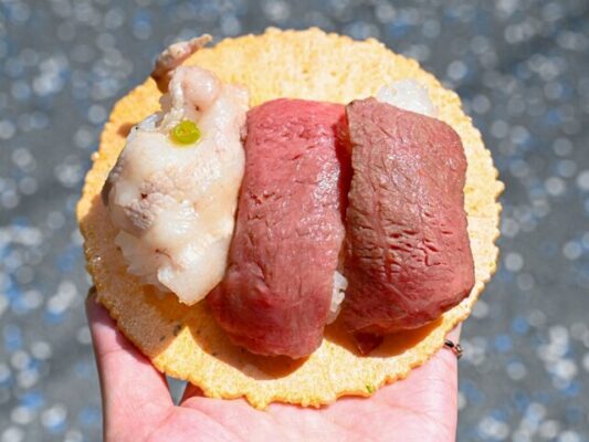 岐阜の食べ歩きグルメの特徴は、なんといっても飛騨牛を使った贅沢メニューの豊富さです。ミンチカツや肉まん、肉寿司など、様々なスタイルで飛騨牛を気軽に楽しめます。さらに、地元の素材を活かしたスイーツも充実しており、抹茶や牧場直営の乳製品を使った絶品デザートが味わえるのも岐阜ならではの魅力です。