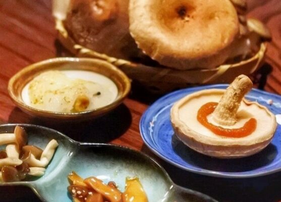 奈良県吉野郡東吉野村の鷲家地区にある、自家栽培のきのこ料理が堪能できる和食処です。国道166号沿いの看板を目印に山間部へ入った場所に位置し、名阪国道針インターから車で約45分でアクセスできます。数寄屋造りの落ち着いた店内には囲炉裏席が設けられ、東吉野の清らかな水と空気で丁寧に育てられた新鮮なきのこを目の前で焼きながら味わえます。ランチには人気の「きのこざんまいコース」があり、肉厚な原木椎茸やエリンギ、タモギダケ、ぬめりスギタケなど多彩なきのこを炭火焼き、天ぷら、鍋仕立て、釜飯などで楽しめます。特に採れたてのしいたけをお造りでいただける珍しいメニューが評判で、素材のプリプリとした食感と旨味を存分に堪能できます。山村ならではの猪鍋定食や鹿鍋定食などジビエ料理も充実しており、併設する栽培施設の見学も可能です。