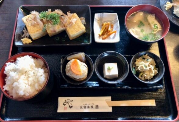 世界遺産の吉野山で80年以上続く老舗豆腐店「林とうふ店」が運営する豆腐料理専門店です。国産大豆と吉野大峰山系の清らかな水、厳選された塩を使い、豆乳濃度13%以上という濃厚な自家製豆腐が自慢で、なめらかな食感と豊かな風味が特徴です。ロープウェイ吉野山駅から徒歩約12分、金峯山寺と吉水神社の間に位置し、和風モダンな落ち着いた店内で吉野の四季を眺めながらお食事できます。ランチは豆腐尽くし膳や湯豆腐膳、豆腐ハンバーグ膳など豊富なメニューが揃い、できたての豆腐を使った料理の数々を堪能できます。湯豆腐膳はおかわり豆腐付きで大豆の甘みと旨味をたっぷり味わえる人気メニューです。豆腐ドーナツや豆乳ソフトクリームなどのスイーツも評判で、併設のショップでは吉野絹豆腐や田舎あげなどのお土産も購入できます。