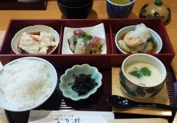 写真のランチメニューからも、天ぷら・お造り・おまかせなど、品のある和定食が揃っていることが伝わり、どれも盛り付けが美しく特別感のある内容。旬を感じる一皿が多く、食材選びから仕込みまで手間を惜しまない料理は、地元の常連さんにも高く評価されています。
