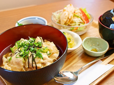 写真のメニューには、湯葉丼セットや手作りきつね揚げがのったうどんセット、人気No.1の冷や奴セットなど、豆腐の魅力をしっかり味わえる料理が並びます。日替わりセットもあり、毎回違った豆腐料理が楽しめるのも嬉しいポイント。素朴ながら丁寧に作られた味わいで、身体がほっと喜ぶランチタイムを過ごせます。