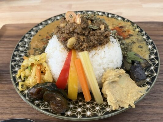 人気のメニューは、香り豊かな「なすのカレー」。コトコト煮込まれた深い味わいと、茄子の甘みが相性抜群で、身体にしみ込むような優しい美味しさが魅力です。食後には手作りのアップルパイが大人気。サクっと香ばしい生地とりんごの自然な甘みが重なり、思わず笑顔になるデザートです。