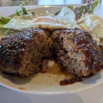 特に人気なのはジューシーに焼き上げたハンバーグ。肉の旨みがふわっと広がるやさしい味わいで、「ここに来るとついハンバーグを選んでしまう」という声も多い一皿です。ほかにも、とんかつや生姜焼きなど、定番のおかずが丁寧に作られていて、どれを選んでも安心できる安定の美味しさ。