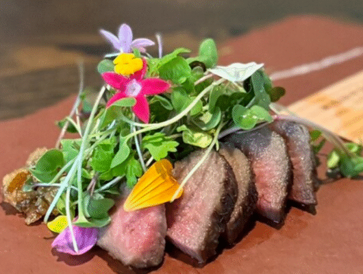 提供される料理は、能登牛や鮎を使ったメニューをはじめ、季節ごとに構成が変わる上質なコース仕立て。季節のタブレット、プティフール、有機JASフェアトレードのグァテマラ エスプレッソ九谷など、細部までこだわり抜いた内容で、2時間の食事が“体験”になるほどの満足感があります。